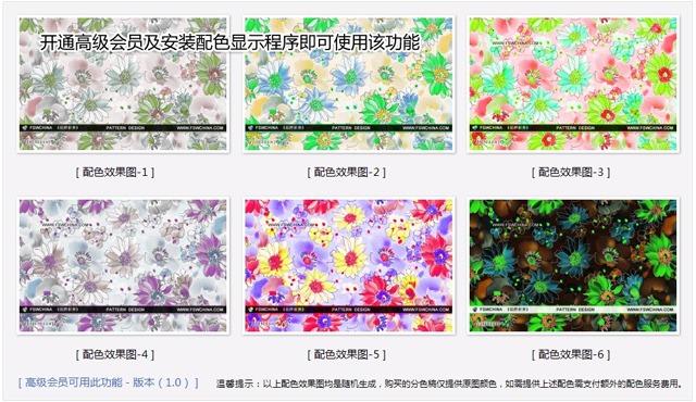 (2) 會員購買花樣的分色服務后可參考下面配色效果