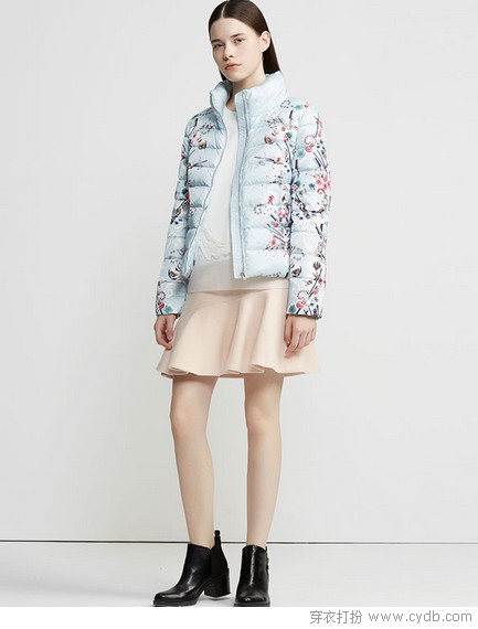 蝴蝶飛來了,落在了一直不起眼的羽絨服上,讓人覺得冬天不那么無聊。貂絨拼接,高級灰期待你的別樣演繹。迷彩印花的方式改變了色彩,藍色系似乎更加溫婉,與蝴蝶翩翩飛舞的情愫遙相呼應。