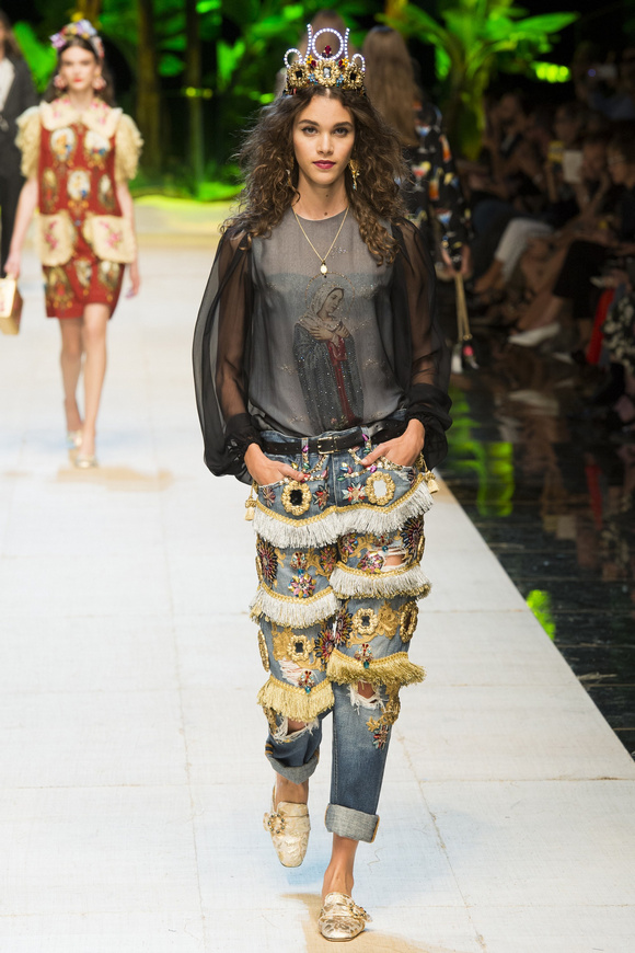 Dolce Gabbana 2017春夏時(shí)裝秀在米蘭時(shí)間9月25日下午2時(shí),一個(gè)從未見過(guò)的富麗奇境將在眼前展開...... 設(shè)計(jì)師二人組將風(fēng)馬牛不相干的元素組成反傳統(tǒng)的時(shí)裝系統(tǒng),譬如,Tropico Italiano 透過(guò)這面靈感墻可以清晰的看到新系列的靈感源于自由不羈、卓爾不群的狂放旅行家的獨(dú)立女性形象,一群隨心所欲而又充滿真性情的孤傲女性.她們無(wú)所畏懼地探索世界上最為刺激的角落! 明快富足的鮮花永遠(yuǎn)盛開在Dolce Gabbana充盈的裙擺上少女的水嫩色彩在奢華的綢緞和質(zhì)地中呼之欲出,新系列中極致手工的繡花細(xì)節(jié)翩然浮現(xiàn)。或是迎合薄紗的質(zhì)感,或是演繹浮雕紋飾的立體花卉,歡脫爛漫的少女氣質(zhì)在行走之間彌漫,嫣然含笑之間潔凈無(wú)瑕,喜歡金屬唇妝,也有顆溫柔爛漫的少女之心。毋庸置疑,沒(méi)有女人會(huì)拒絕花朵帶來(lái)的優(yōu)雅和清新,少女更是和花語(yǔ)心靈相通。服飾上析出彎曲纏繞的藤蔓花朵,大片盛開在少女纖細(xì)的腰間、胸口、裙擺。。。還有波點(diǎn),我想 波點(diǎn)只有Dolce Gabbana能用的好看了!