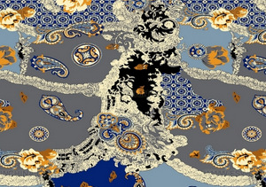 類似現代藝術的“繪畫風格圖案”尤其體現在2009年春夏。版型在80厘米以上的大型印花有所增加,也有像把水彩潑上去、滲透感較強、令人難以判別的圖案,以及像用筆把顏料飛濺到布料上的印花圖案。